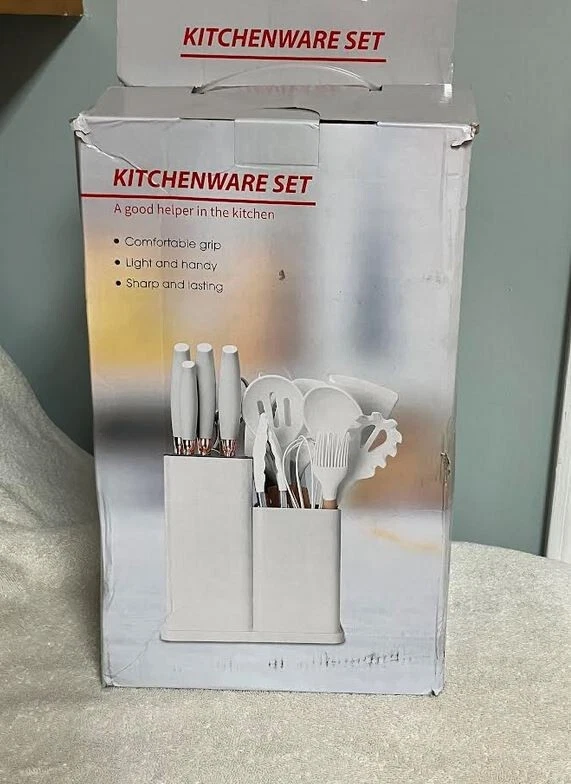 18 Pieces Kitchen Cooking Utensils Set with Knife Set+ More! – White – New