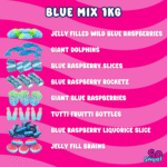 - Looking for fruity variety? With a mix of chewy and juicy blue sweets, it’s a flavour-packed choice.