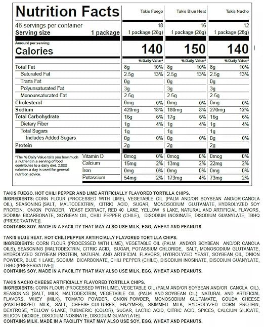 Mix-up how you snack with Takis Rolled Tortilla Chips and give your taste buds the gift of launching into an unexplored universe of sensational flavor combinations. Takis knows hunger can strike at a moment’s notice, creating an unforecasted storm of emotion that distracts you from living in the moment. That’s why they set out to pioneer irresistible snacks that unleash tantalizing waves of flavor and deliver an unbeatable crunch in every single bite. Pack a bag to give yourself a tasty pick-me-up at school, be ready to conquer hunger while spending the day hanging with your friends or grab a handful for when you just need a boost of flavor while hunting for new adventures. This three-flavor variety pack makes quick work of not only extinguishing your own hunger, but they’re also a great food for sharing with friends and family. Fuego and Blue Heat give you the taste of zesty hot chili pepper and lime while Intense Nacho gives your taste buds the gift of launching into an unexplored universe of intensely cheesy artificial flavor. Share a snack with your squad and transform a low-key hangout into a delicious celebration or turn the vibes up to ten on your next road trip when you bring Takis Rolled Tortilla Chips. Try all the supercharged Takis’ family of snacks and experience for yourself how these snacks give your senses a first-class ticket out of this world—changing the way you feast on flavor forever. Are you ready to Face the Intensity?